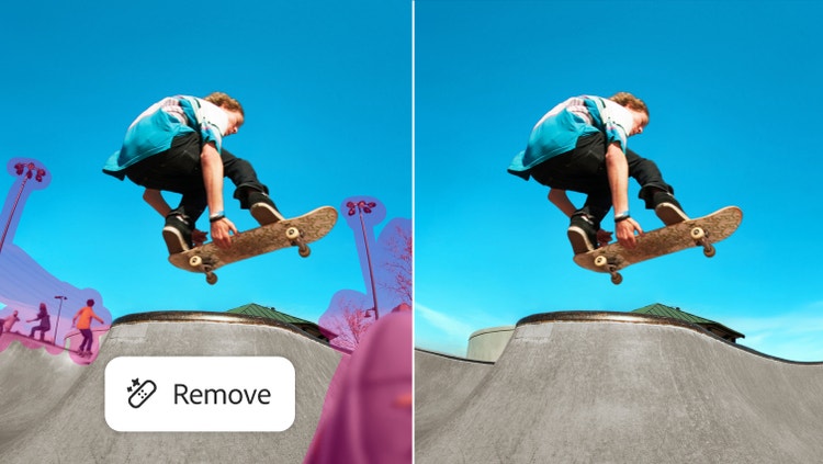 Tidy up your scene in a click. Distraction Removal in the Remove tool automatically detects and deletes unwanted elements like wires and people in the background.